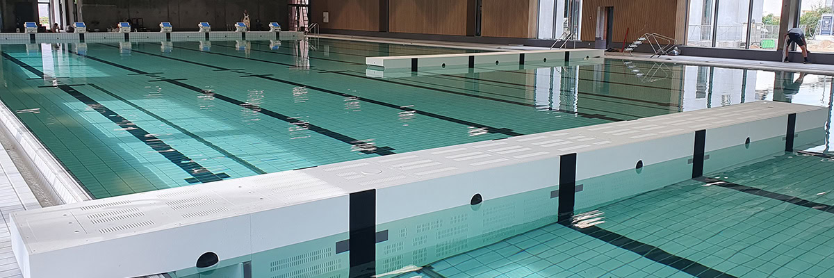 De keerwand kan langs de zijkant van het bad worden geplaatst of halverwege, zodat in de twee ontstane gedeeltes gelijktijdig verschillende activiteiten kunnen plaatsvinden. Ook is het mogelijk om op de horizontale keerwand startblokken of een hek te plaatsen. Bekijk de video over onder andere de werking van de elektrische boom mover buggy’s via ons YouTube-kanaal, waar we regelmatig instructievideo’s delen van onze producten en installaties.