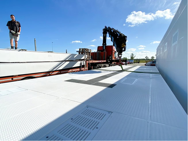 • Horizontaal verplaatsbare keerwand van Variopool verdeelt het bassin op vrijwel elke positie. Verplaatsbaar met boom mover buggy’s, verankerd in perron.